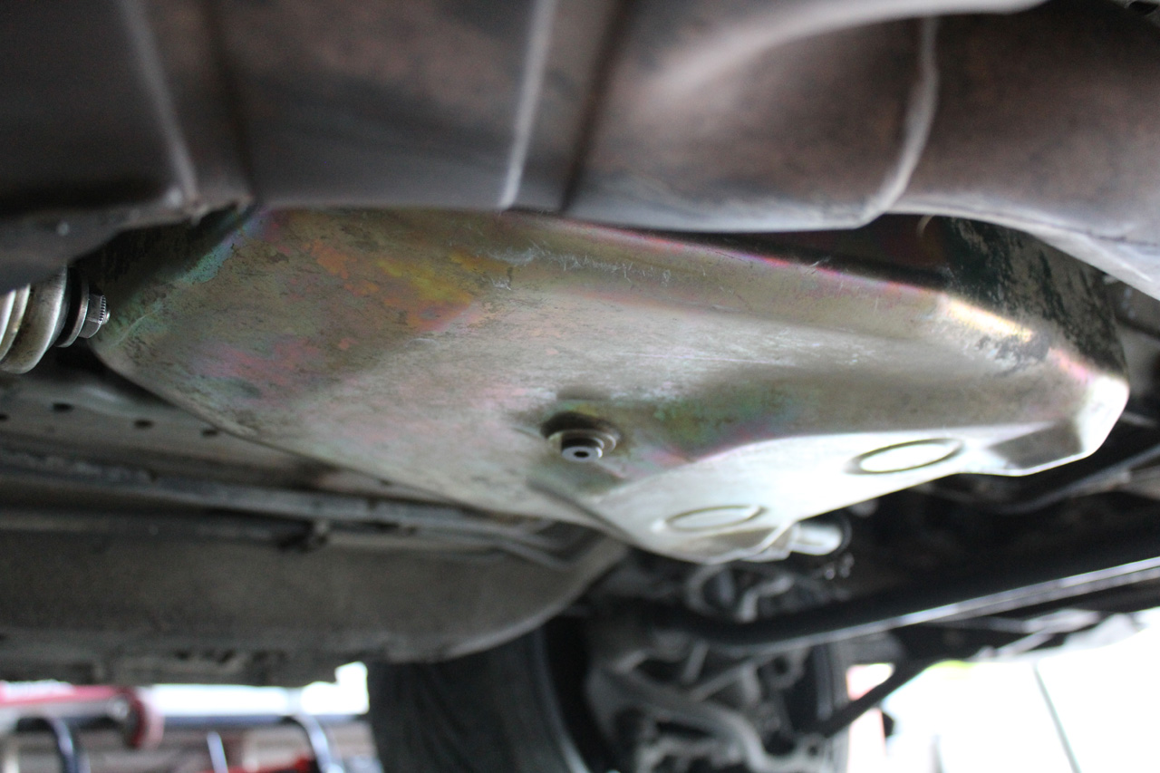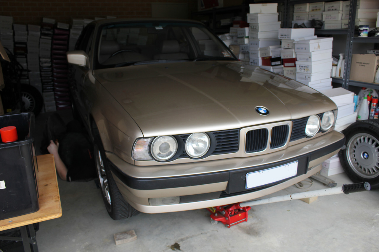 The first step is to get the car in the air and get under it.  I used the combination of a trolley jack and 4 axle stands.
