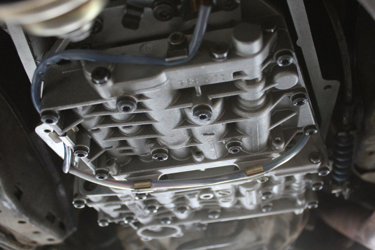 Insert the wiring socket through the hole in the transmission and position the valve body.  Ensure the manual selector shaft is sitting on the pin of the cable assembly.   Also take note of the speed sensor.  Ensure it is correctly positioned inside its hole in the transmission.   Put the 13 bolts that mate the valve body into their respective positions and do them up hand tight.  Take your torque wrench and do up each bolt to the correct 8nm.  Work your way from the centre outwards in a spiraling pattern.