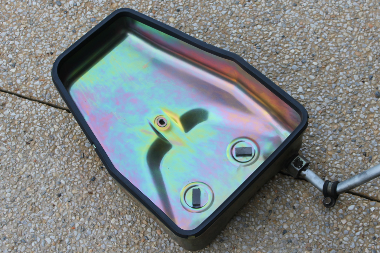 Inspection of the pan shows the kind of issues a lack of proper maintenance can cause.  The particulate matter does not provide a lot of hope for the condition of the clutches.